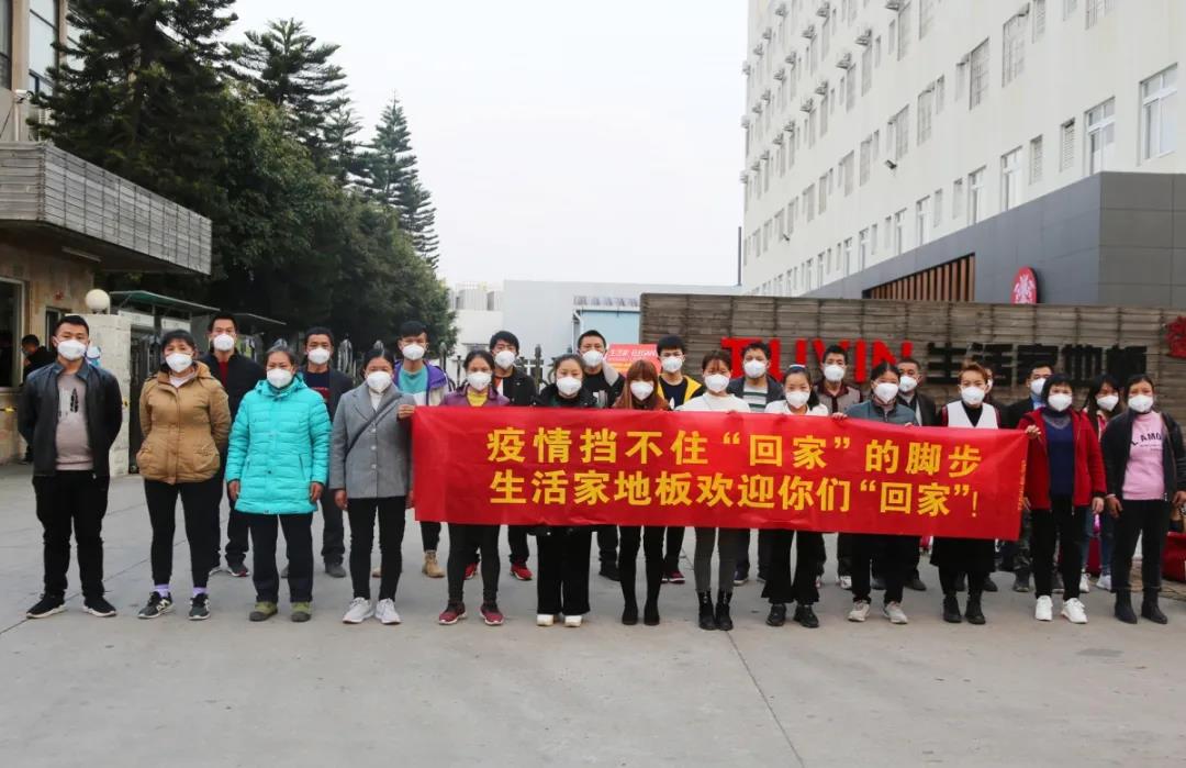 特殊時期,心系員工,生活家地板的硬核做法,不僅俘獲了員工的心,還收獲點贊聲一片。不少員工表示,太驚喜了,完全沒有想到公司會這樣做。貴州石阡縣員工申先生說:“因為買不到回中山的票心里很著急,公司能夠為我們大家包車回中山上班,真的感覺很貼心。”據了解,制造中心2月24日恢復生產,預計共有400多人復工,能滿足70%以上的產能。
