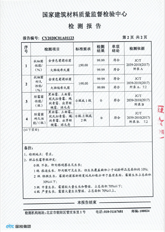 經(jīng)國家建筑材料測試中心(CTC)認(rèn)證,這款納米鹽抗菌地板可殺滅大腸桿菌、金黃葡萄球菌、白色念球菌等多種細(xì)菌,不僅可以殺滅細(xì)菌,還可以殺滅霉菌,廣譜殺菌,殺菌率高達(dá)99.9%!表面平平無奇人畜無害,殺起菌來可是毫不留情。