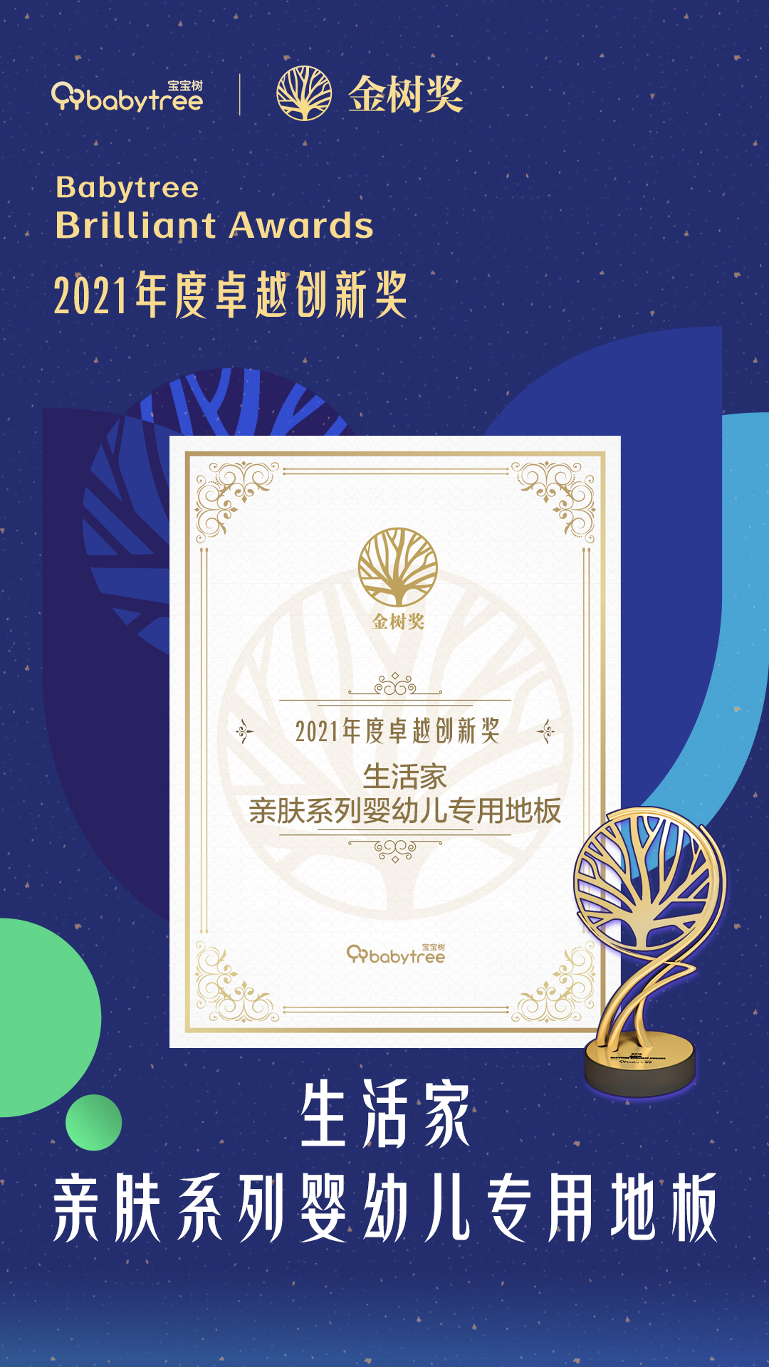 12月2日,被譽為“母嬰界奧斯卡”的金樹獎名單正式揭幕,備受吳敏霞和其他媽媽們贊譽的生活家地板嬰幼兒專用產品憑借健康環保的產品品質、突出的創新技術斬獲寶寶樹2021年度卓越創新獎。