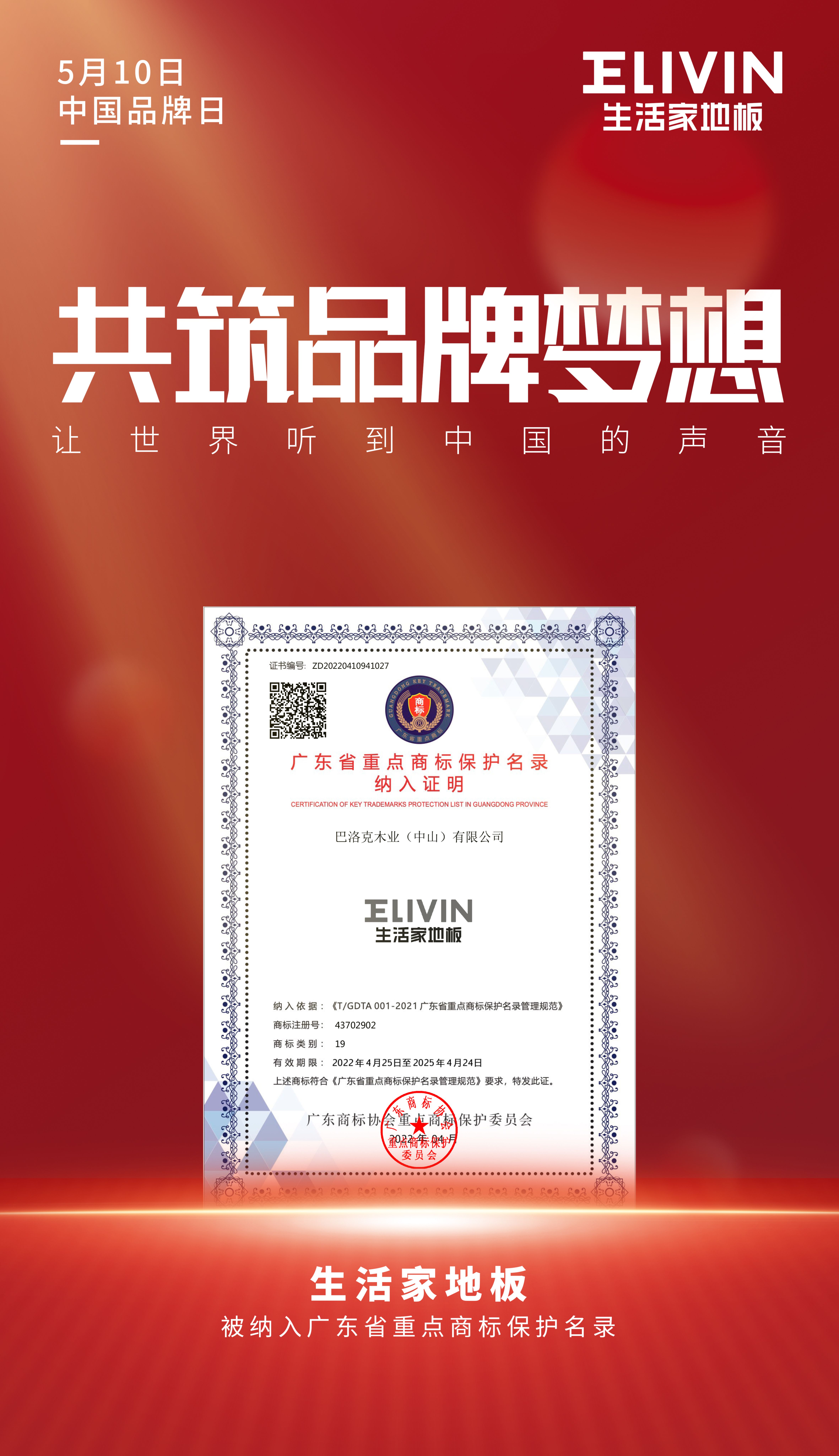 生活家地板經過多年的品牌沉淀,以“致力成為全球最優秀的地板服務商”作為長期愿景,堅守產品品質,鑄就品牌強勁實力。近日,生活家地板榮膺2022中國家居綜合實力100強品牌,“生活家地板”商標被納入廣東省重點商標保護名錄,這是社會各界對生活家地板的認可,同時也彰顯了生活家地板品牌價值和企業實力。